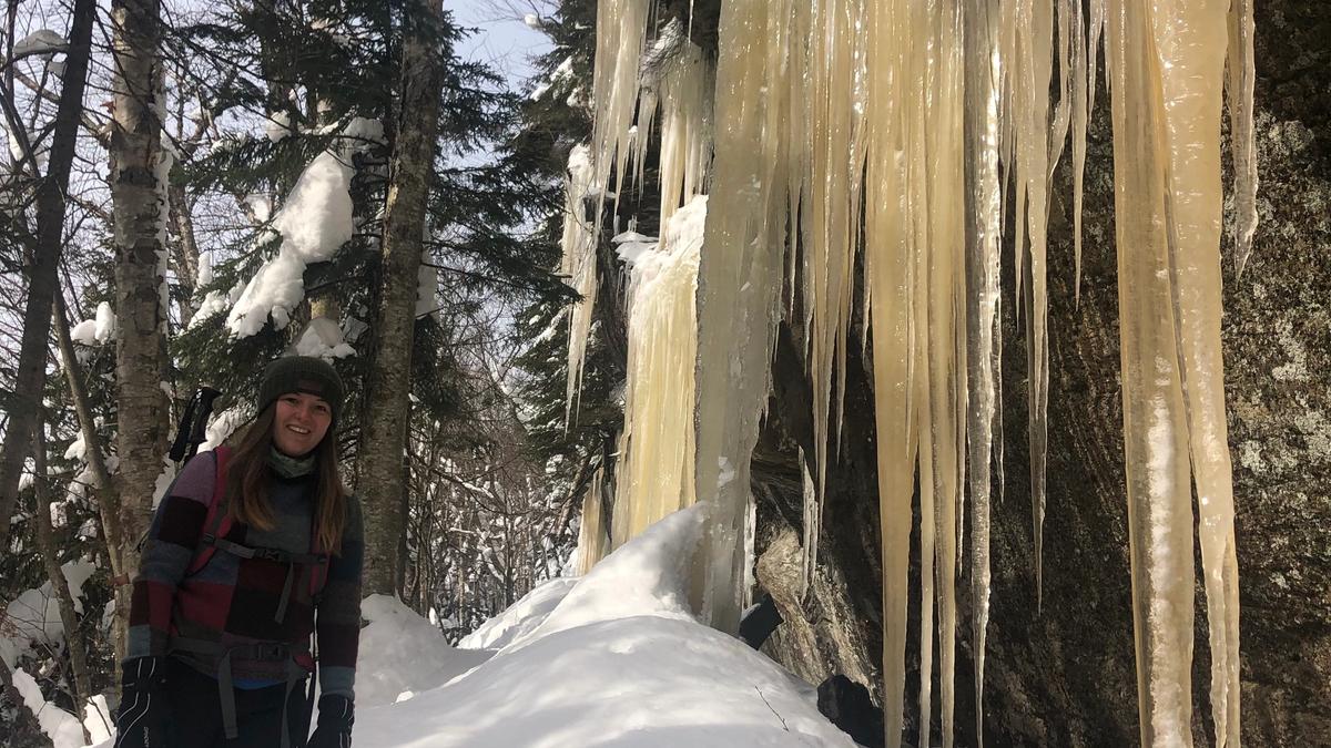 Toward the top there are these giant rock formations. In the winter they create massive icicles that dangle over the rock. These icicles are so huge you can stand underneath them.