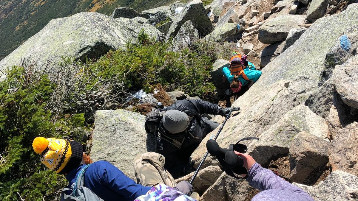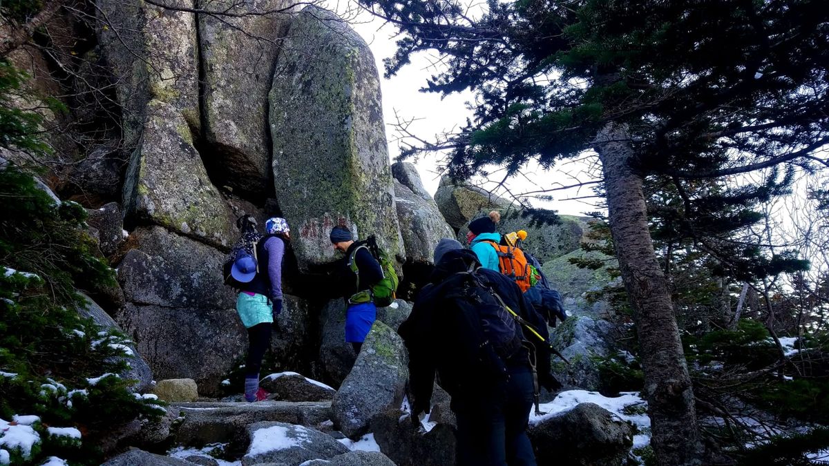 Snow and ice blanketed the entire mountain. Katahdin’s rock scrambles are challenging on any day, but in these conditions, they felt even more intense—and thrilling. Tiny metal rungs embedded in the rock faces provided some support, but at one particularly tricky spot, I remember staring up at a reach that seemed impossible, thinking, How am I supposed to get up there?