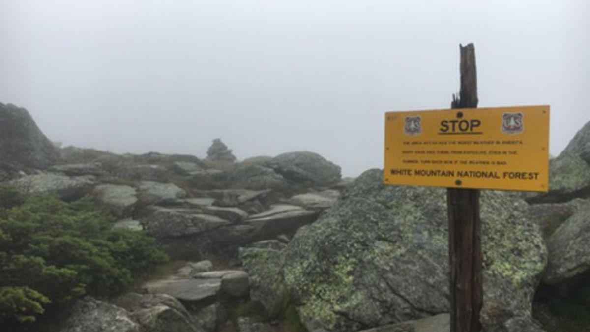 We then descended back down to where we would set up camp on a beautiful waterfall. We ate dinner and called it a night. Being I was unprepared my sleeping bag was not warm at all. I was freezing and from all the hiking my legs were numb and shaking. I woke up in the middle of the night with extreme pain in my legs and shoulders. I will never forget looking at John and saying " John, I cant feel my legs". It was one of the longest nights of my life and I got little rest. The next morning we packed up our gear and set out back up to the cloud hut and ascended our way to Washington's summit. It was a completely different mountain than the day before. It was freezing and windy. I had very little food with me so I was starving, my body was in pain and I was numbingly cold. The visibility was very little. You could barely make out what was in front of you and any exposed skin got stung by the ice cold wind. The most difficult part was the final climb up on a endless rock staircase. I felt as though I was on another planet. Seeing the weather station made me feel like crying with joy. We made it to the peak and we didn't stay out to long due to the cold weather. We made our way into the visitor center, it was packed with tourist who drove up the mountain or took the cog train up. My energy was so drained at this point that I did not care if I sat on someones lap or napped on a table.